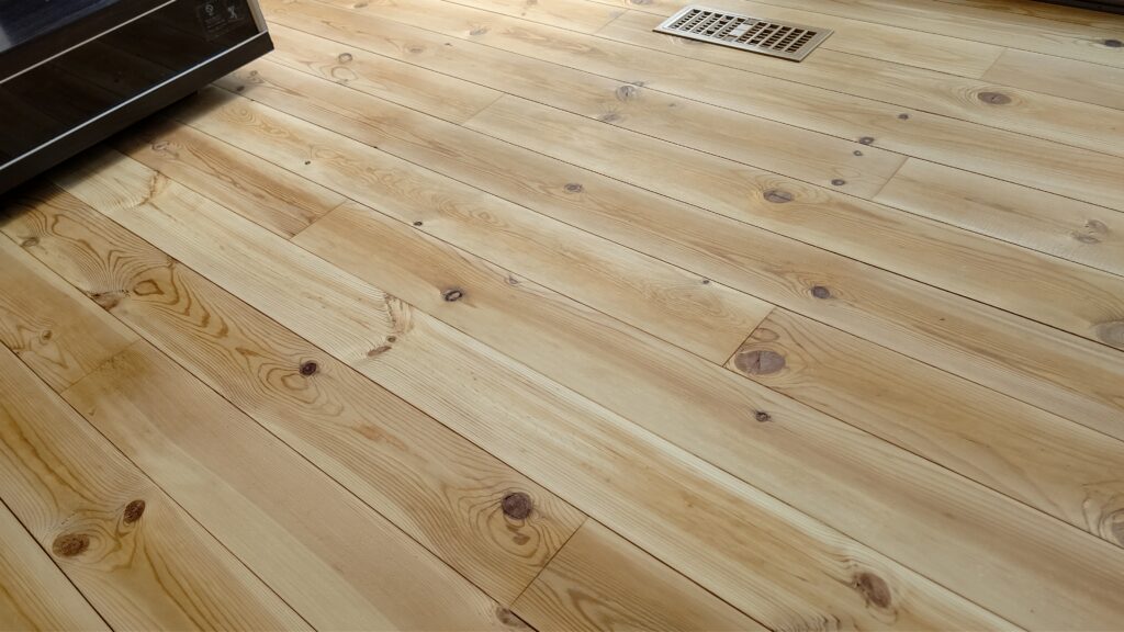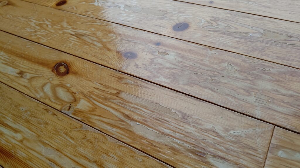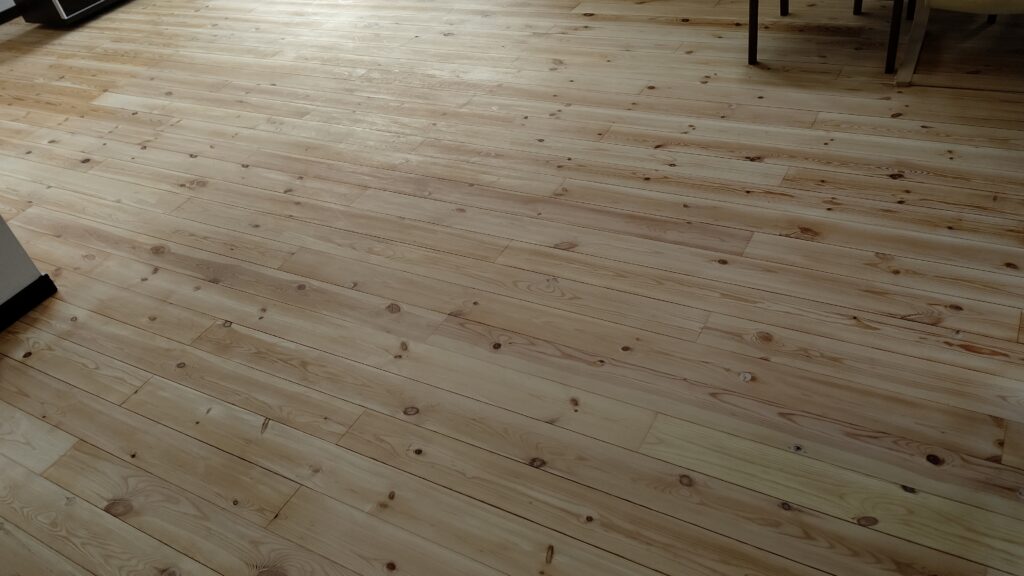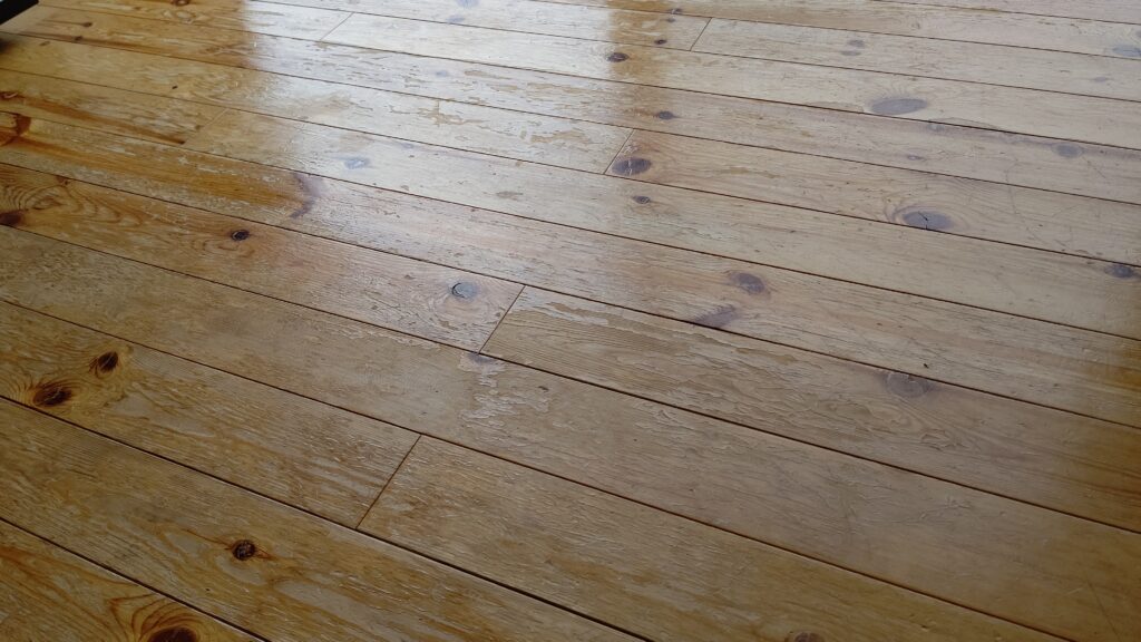 床は杉板無垢材ウレタン塗装、築10年程度でしたが陽当たりが抜群で表面がパリパリになってしまっていました。