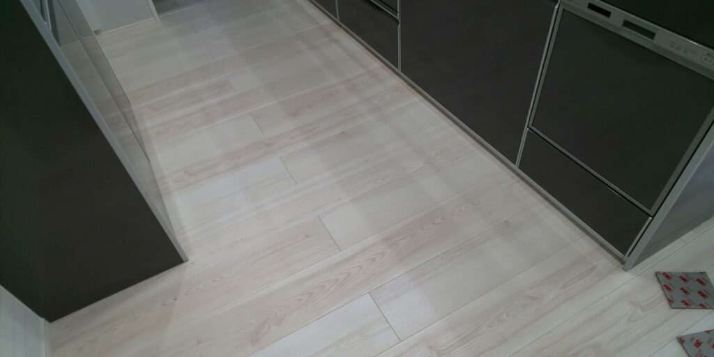 目立つ傷も無くキレイに仕上がりました✨ キッチン付近は汚れやすいので、濃い洗剤使って頂いても大丈夫です👌