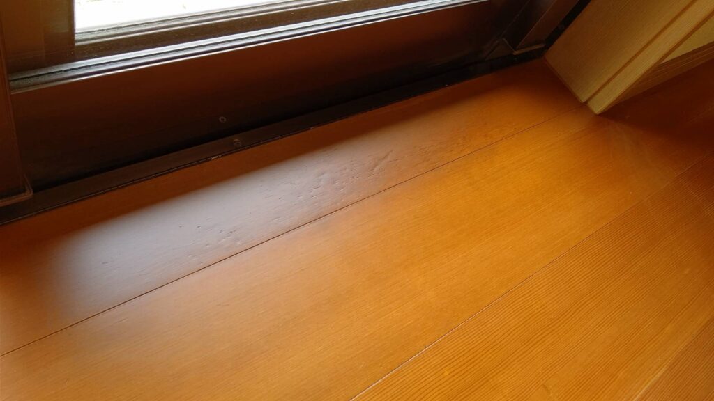 中津川市内で床の補修作業からコーティングまでを施工してきました。リフォーム業者様から問い合わせ相談があり、現状から強度復元、見た目7割復帰程度の説明の上ご依頼頂きました。 補修作業は完全にわからなくな